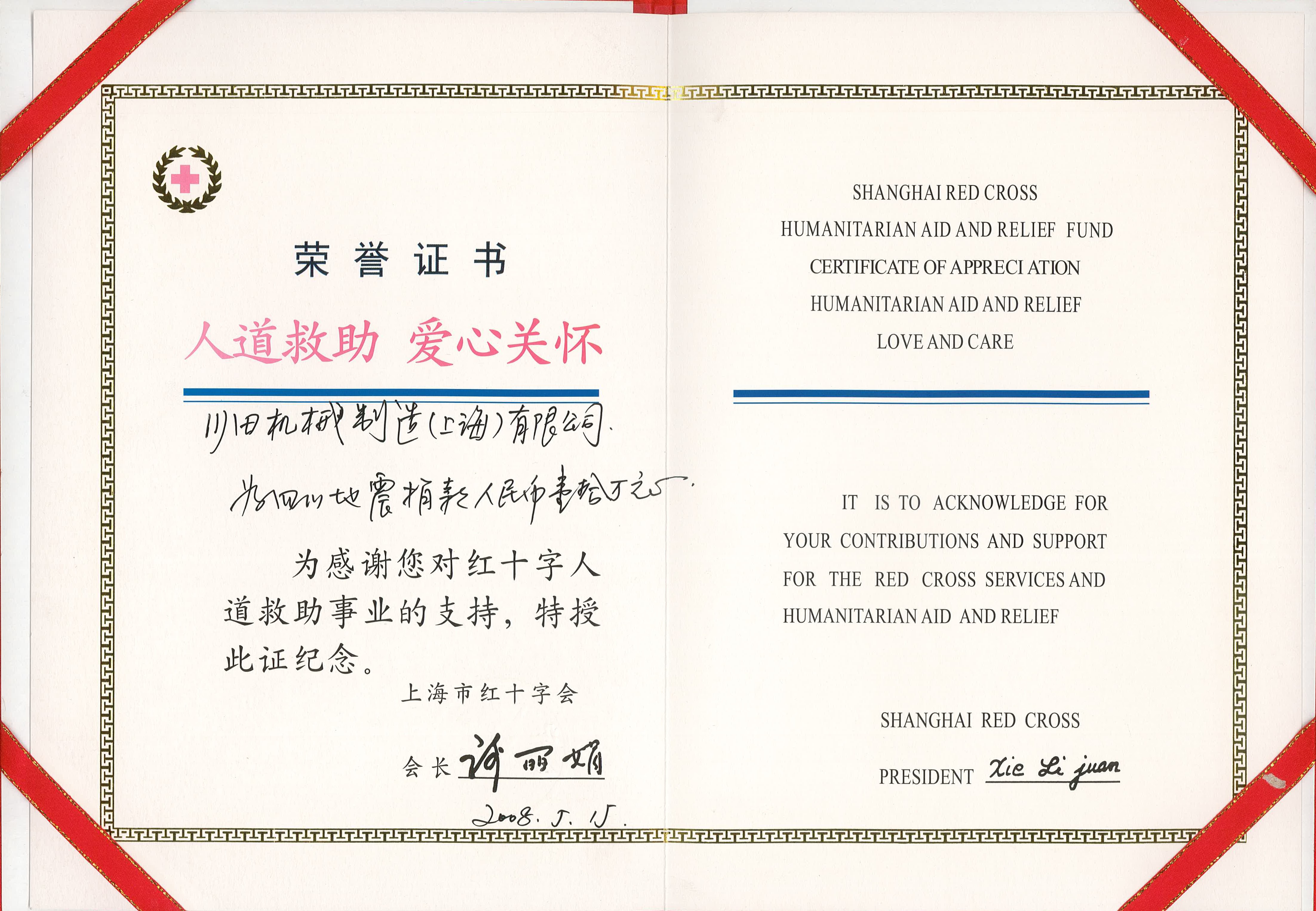 2008 上海紅十字會川田機械上海